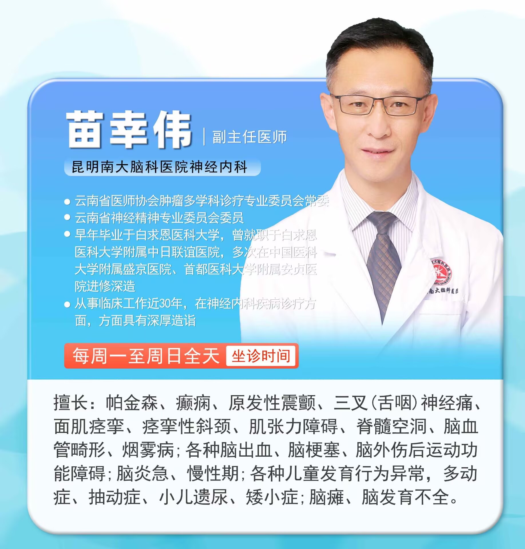 (每周二、三、四上午、周日上午坐诊)