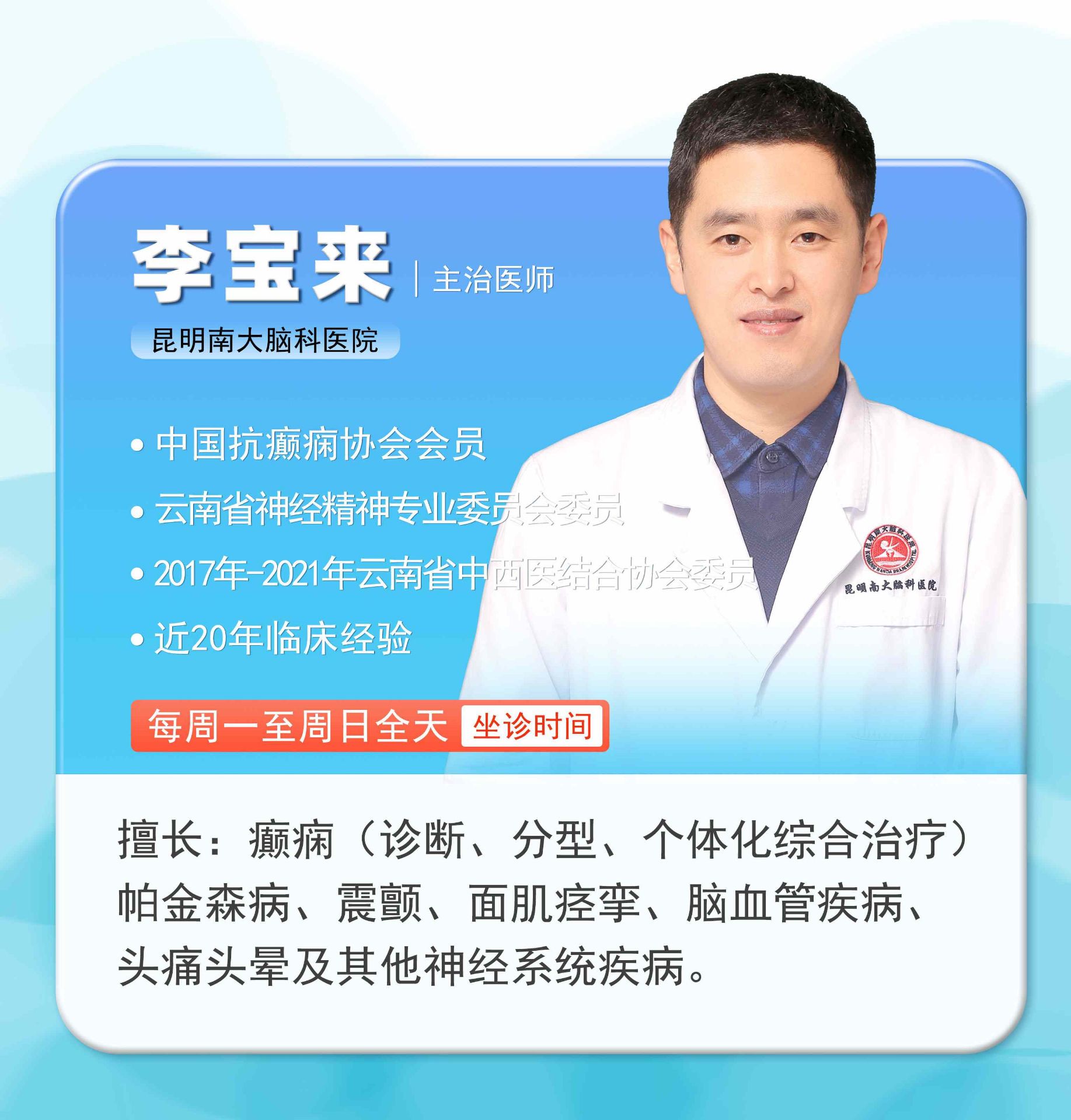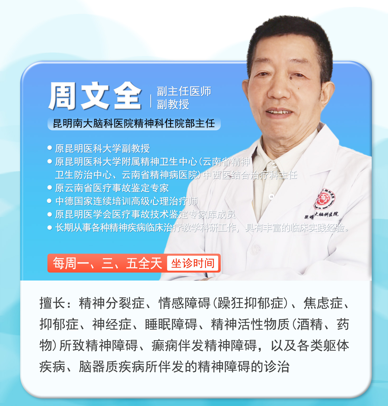 (每周一上午、周二下午、周三全天坐诊)