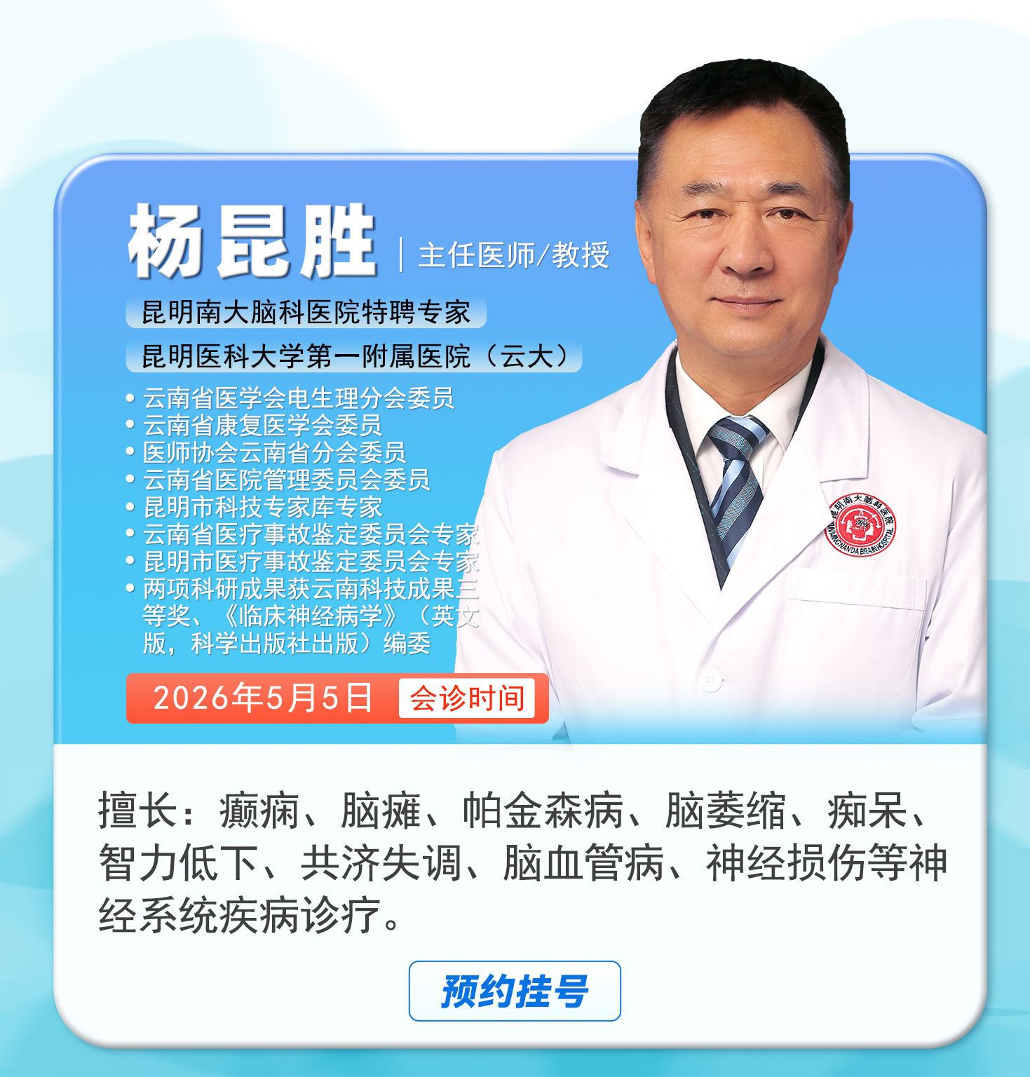 预约挂号 >昆明医科大学第一附属医院 杨昆胜 教授