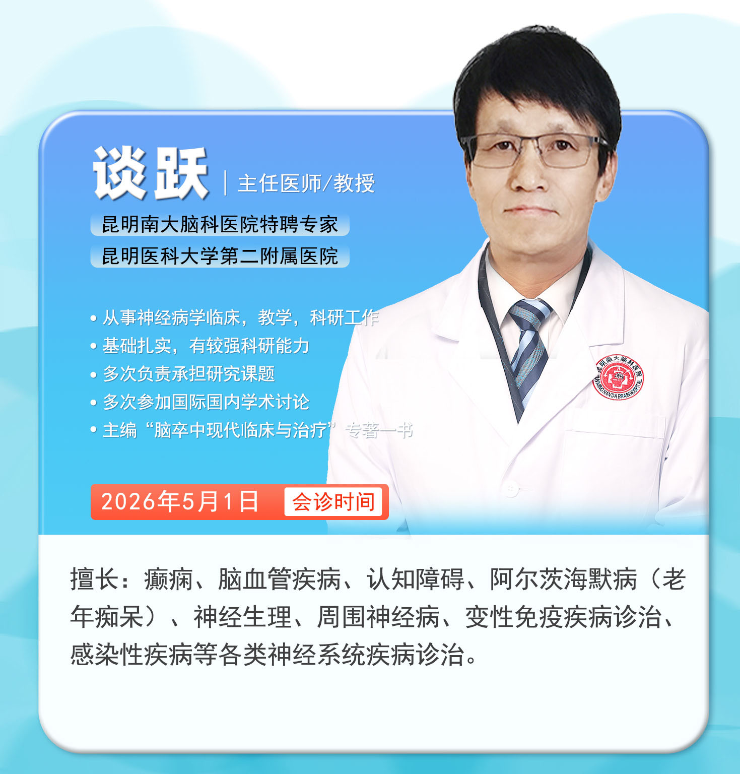 预约挂号 >昆明医科大学第二附属医院 谈跃 教授